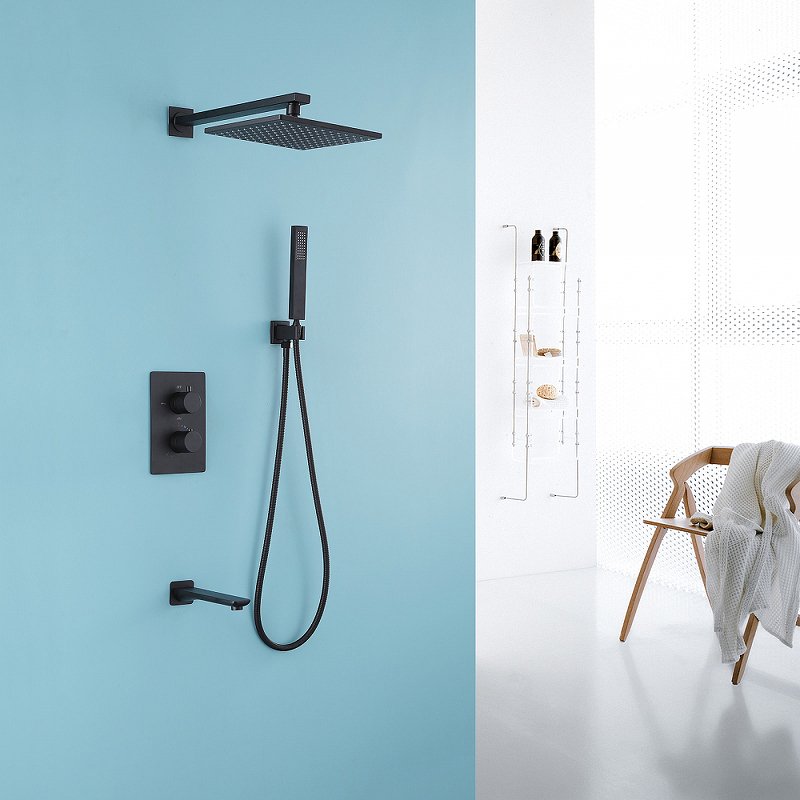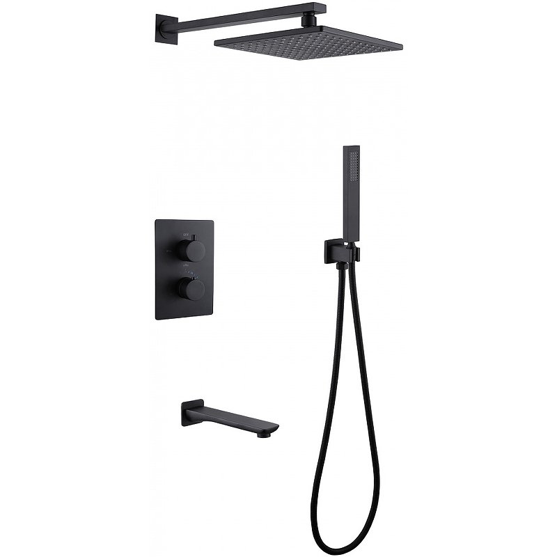 Душевая система Abber (Аббер) Weiss Insel AF8050B скрытого монтажа с изливом, термостат, черная матовая