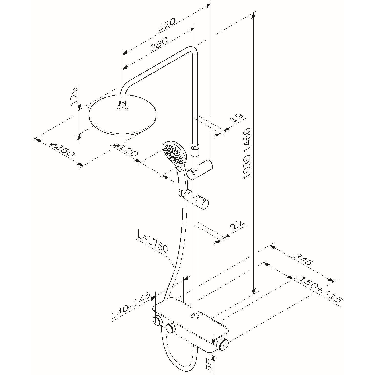 Комплектация:F0750A400 Inspire V2.0, душевая система, набор: см-ль д/душа с термостатом, верхний душ d 250 мм, ру p>