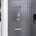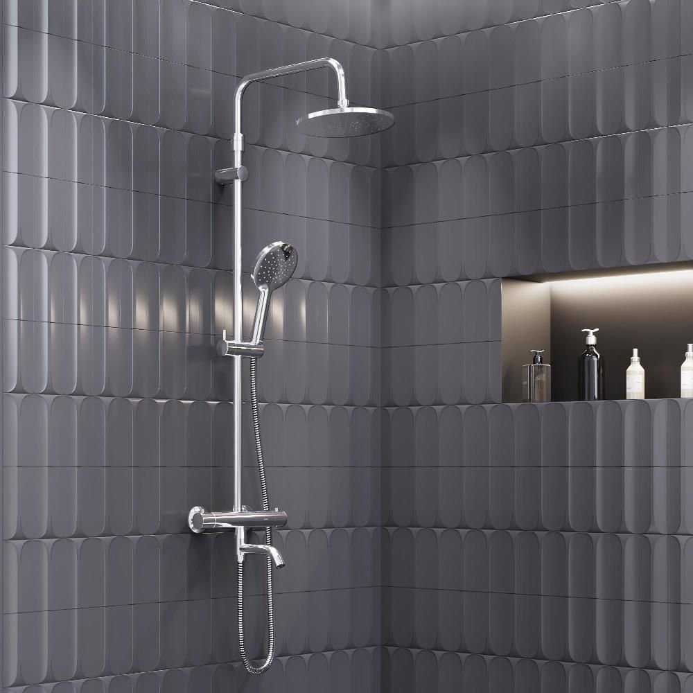 Стильный и лаконичный дизайн душевой системы Jupiter прекрасно подойдет как для классической так и для современной ванной комнаты. Максимальная безопасность: термостатический картридж 35мм обеспечивает точную настройку температуры и напора воды. Благодаря телескопической штанге с диапазоном регулировки 400 мм ежедневные процедуры будут одинаково комфортны для людей любого роста. Большое количество форсунок с микроотверстиями которые распределяют поток мягкими равномерными струями обеспечит вам расслабляющий эффект настоящего домашнего SPA. Переключайте потоки воды между ручной и тропической лейками плавным поворотом дивертора а между смесителем и ручной лейкой - поворотом излива на 90 градусов. Угол наклона тропической лейки можно регулировать. Инновационное покрытие High Gloss надежно защищает хромовую поверхность душевой системы от мелких повреждений и сохраняет ювелирный блеск на долгие годы.