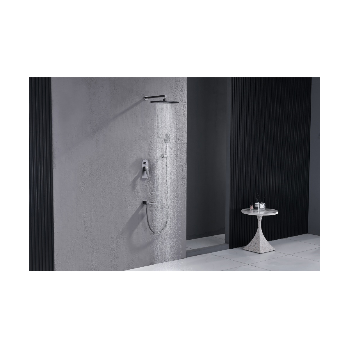 Доставка Душевая система Ganzer (Ганзер) GZ02165-Q скрытого монтажа, графит из Москва в районы и города ЮВАО, ЮЗАО, ЮАО, Новомосковский АО, Одинцово, Подольск, Щербинка, Троицк, Строительный рынок Славянский мир, 41-й км МКАД, бывшая Мельница, Красногорск, Домодедово, Тёплый стан, Коммунарка, Мосрентген, Видное, Мамыри, Краснознаменск
