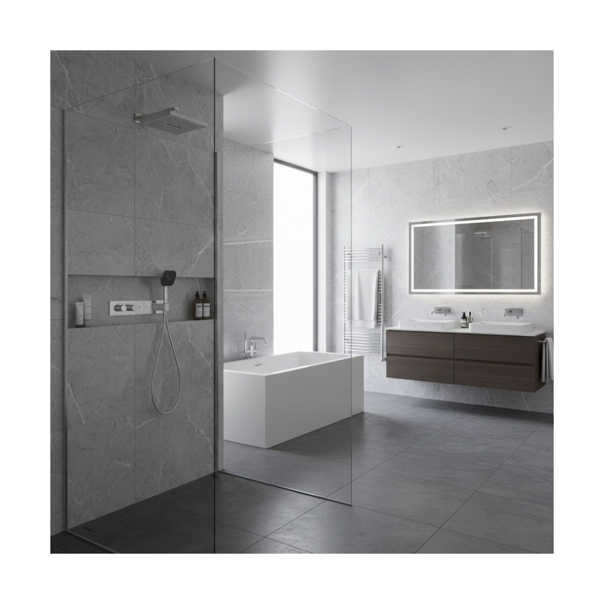 - Скрытый монтаж: Установка системы в стену обеспечивает чистый и упорядоченный вид ванной комнаты, убирая все лишние элементы на виду.