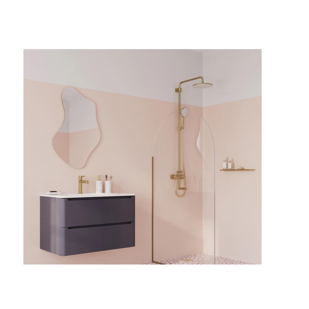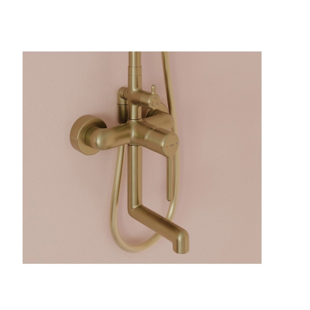 Стильная функциональная душевая система Aiger, где удачно сочетается актуальный современный дизайн и трендовый оттенок матового золота с брашированным покрытием. Тонкая удлиненная ручка добавляет смесителю изящества и комфорт в управлении.