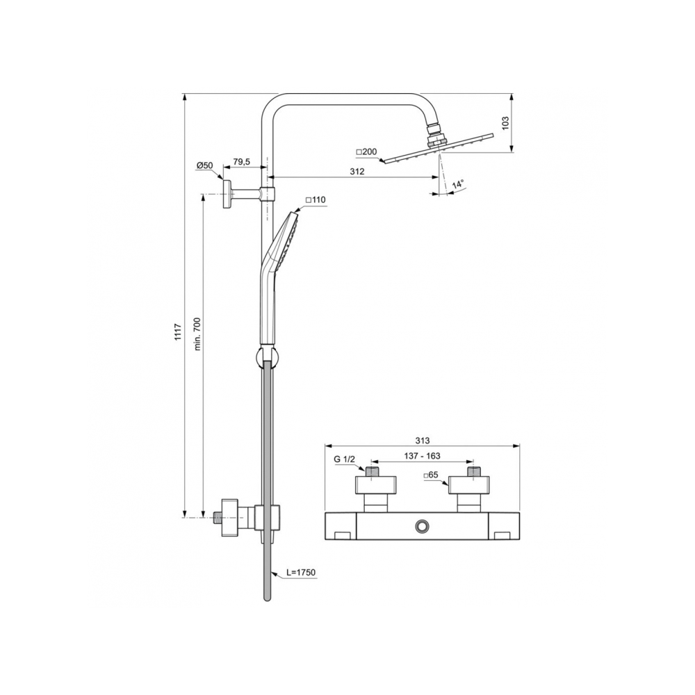Душевая система с термостатическим смесителем для душа Ideal Standard CERATHERM C100 A7540AA