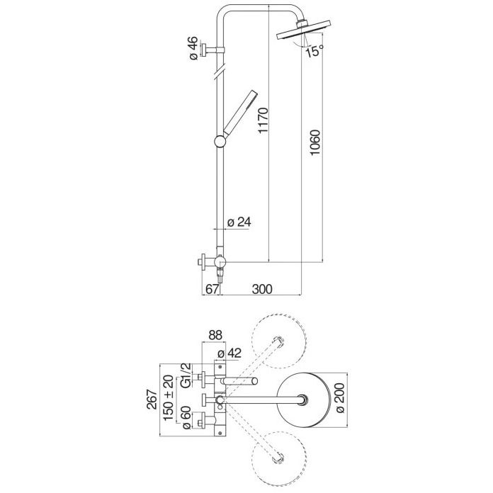 Свойства:с термостатом, с тропическим душем, с ручным душем p>