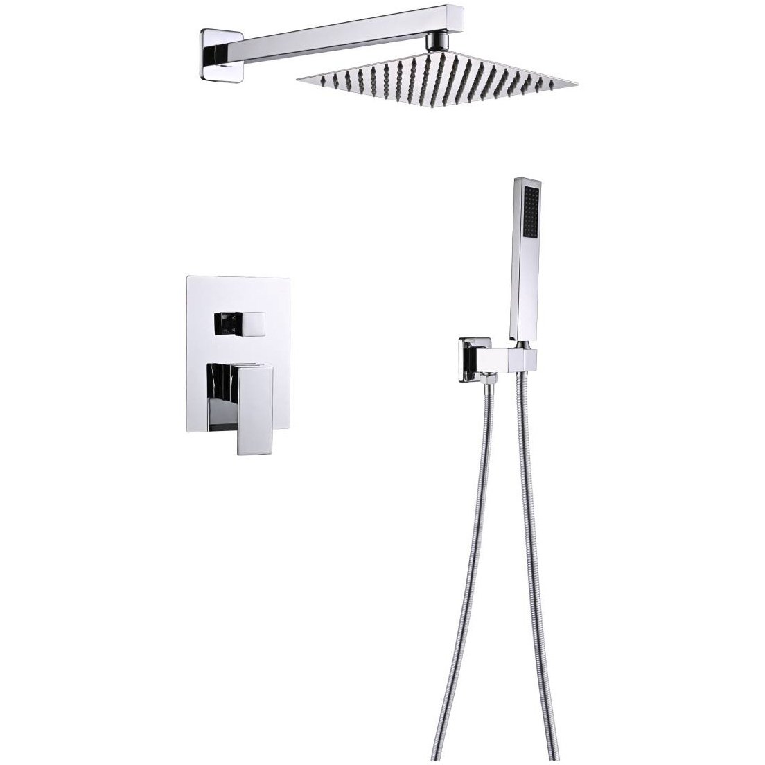 Кубическая лейка верхнего душа в стилистике серии Профсан CUBE выглядит оригинально, как и переносная лейка также угловатой формы. Весь дизайн изделия стремится к прямоугольным и кубическим формам. Блок смесителя скрытого монтажа с ручкой и переключателем также представляет собой прямоугольник.