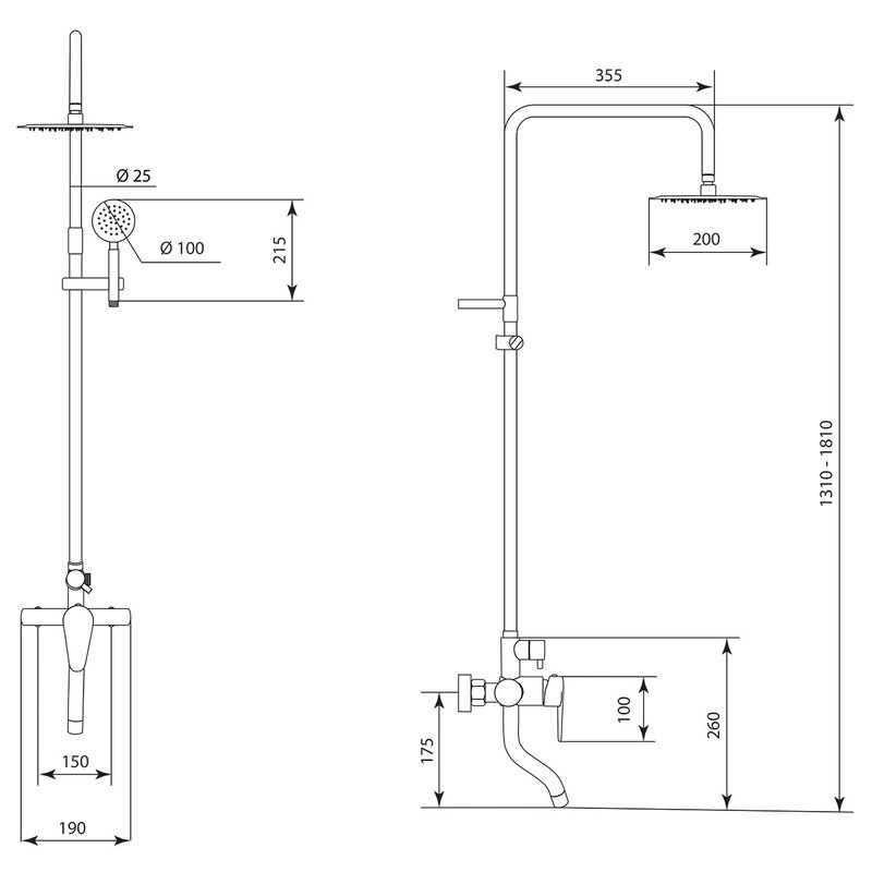 Душевая система Славен (Slaven) с изливом Сталь Ж (СЛ-ОД-Ж60) хром