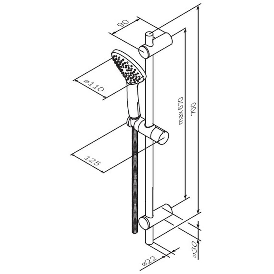 Комплектация:F0190022 Gem душ.комплект: ручн.душ 1 ф-ция d 110 мм, штанга 700, шланг 1 750 мм, черный, шт. p>