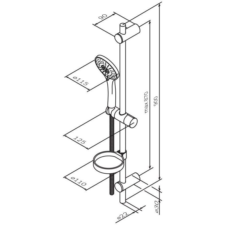 Душевой комплект Am.Pm (Ам.Пм) Spirit ручной душ 5 функций d 115 мм, штанга 900 мм, шланг 1750 мм, хром, F0170064