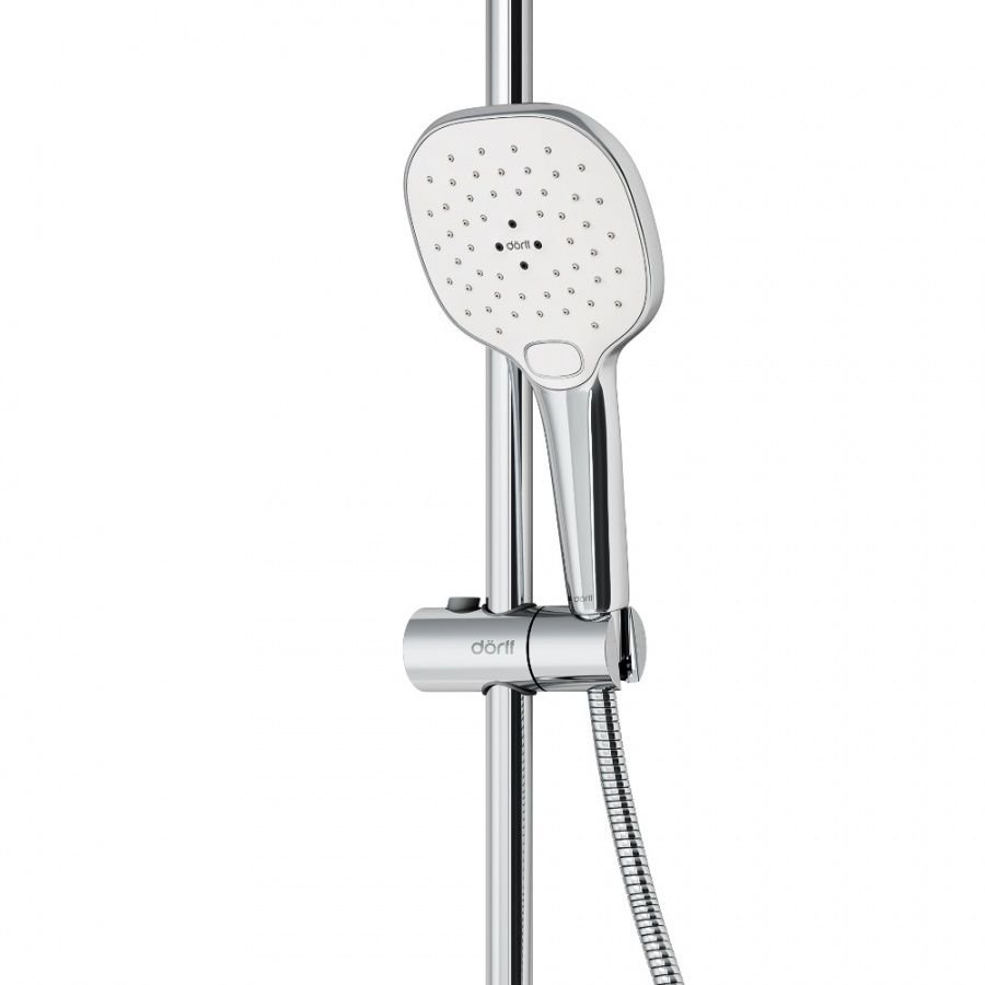 Душевой комплект Dorff (Дорфф) Prime, ручной душ 5 функций, стойка 600 мм, шланг 175 мм, хром, белый, D0140000