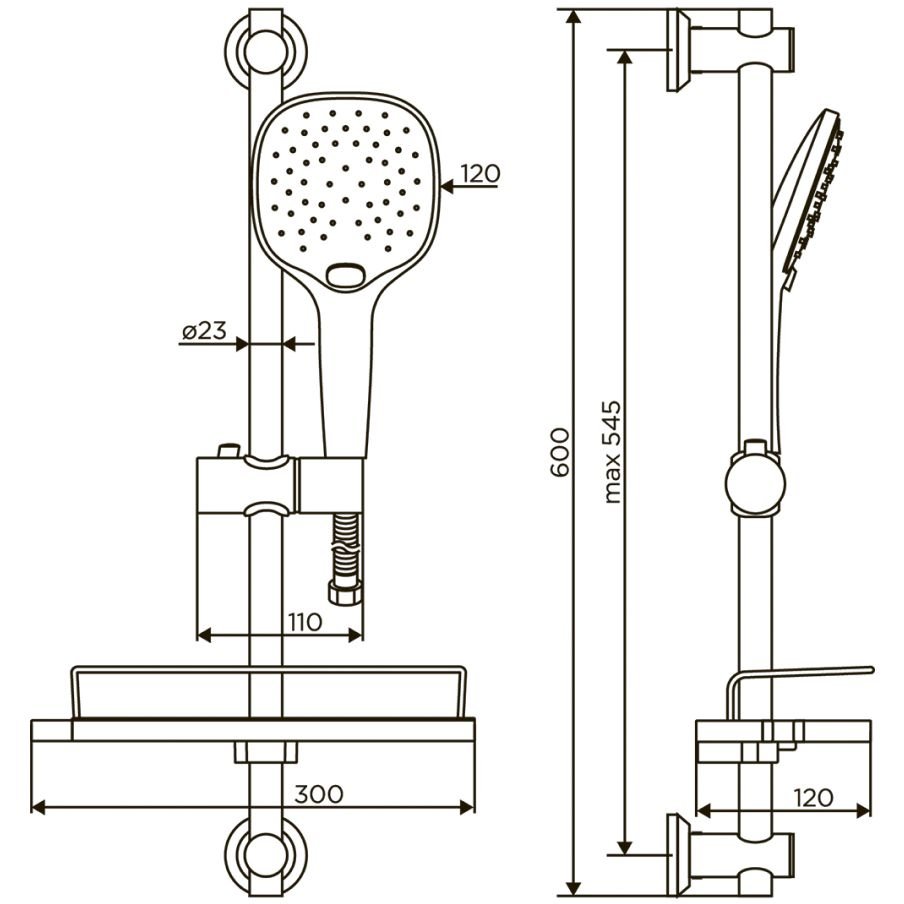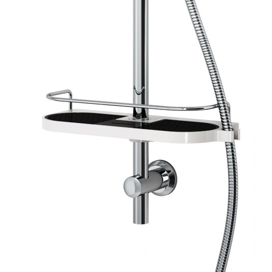 Современному душевому комплекту из коллекции Prime есть чем порадовать своих обладателей: ручной душ с 5-ю функциями хромированный шланг регулировка по высоте эргономичная полка и стильное цветовое решение.