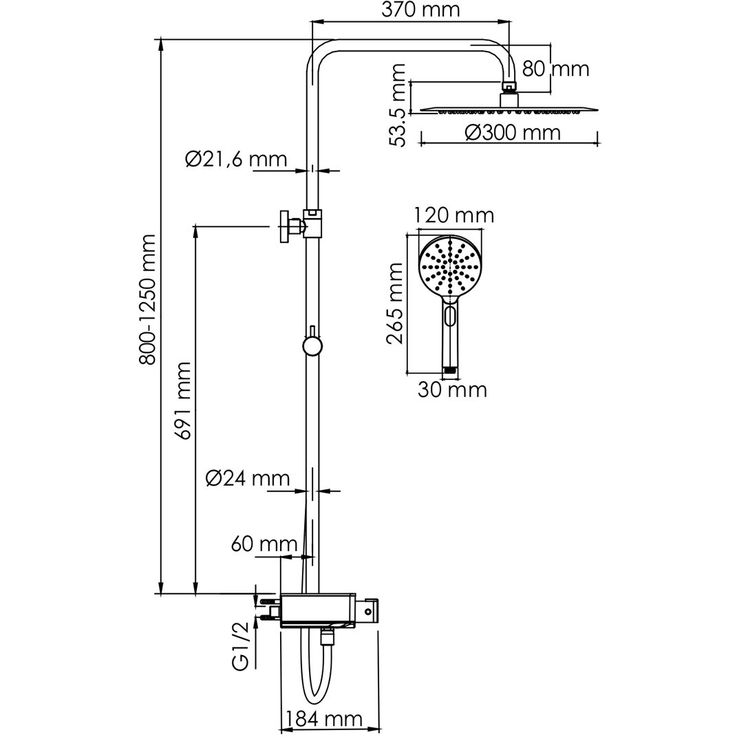 Стойка для душа, Ø 24 мм регулируемая по высоте