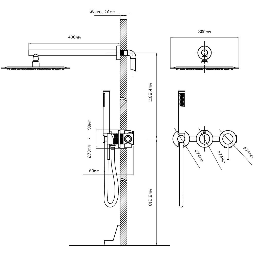 Комплектация:Верхний душ, ручной душ, смеситель со встраиваемой частью p>