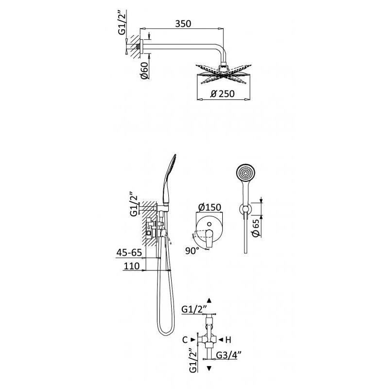 Свойства:скрытого монтажа, с тропическим душем, с ручным душем p>