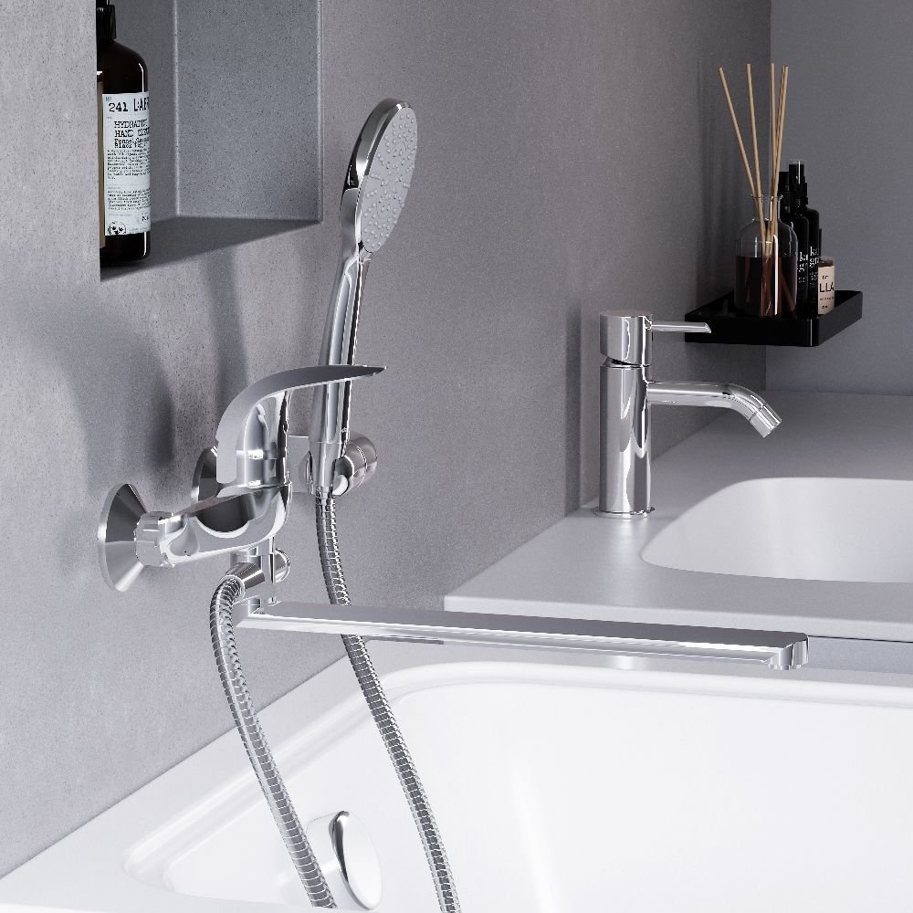 Классический вариант смесителя для ванны и душа будет аккуратно смотреться в интерьере из-за округлых форм и сглаженных углов. Длинный излив смесителя поможет справится с рядом бытовых задач его длина составляет 328 мм. Дизайн в стиле Natural отличительная черта скандинавского стиля. Плавное управление ручкой смесителя с картриджем Light Flow позволит регулировать температуру без резких скачков. Инновационное покрытие High Gloss гарантирует сохранение ювелирного блеска продукта и защищает поверхность от мелких повреждений.