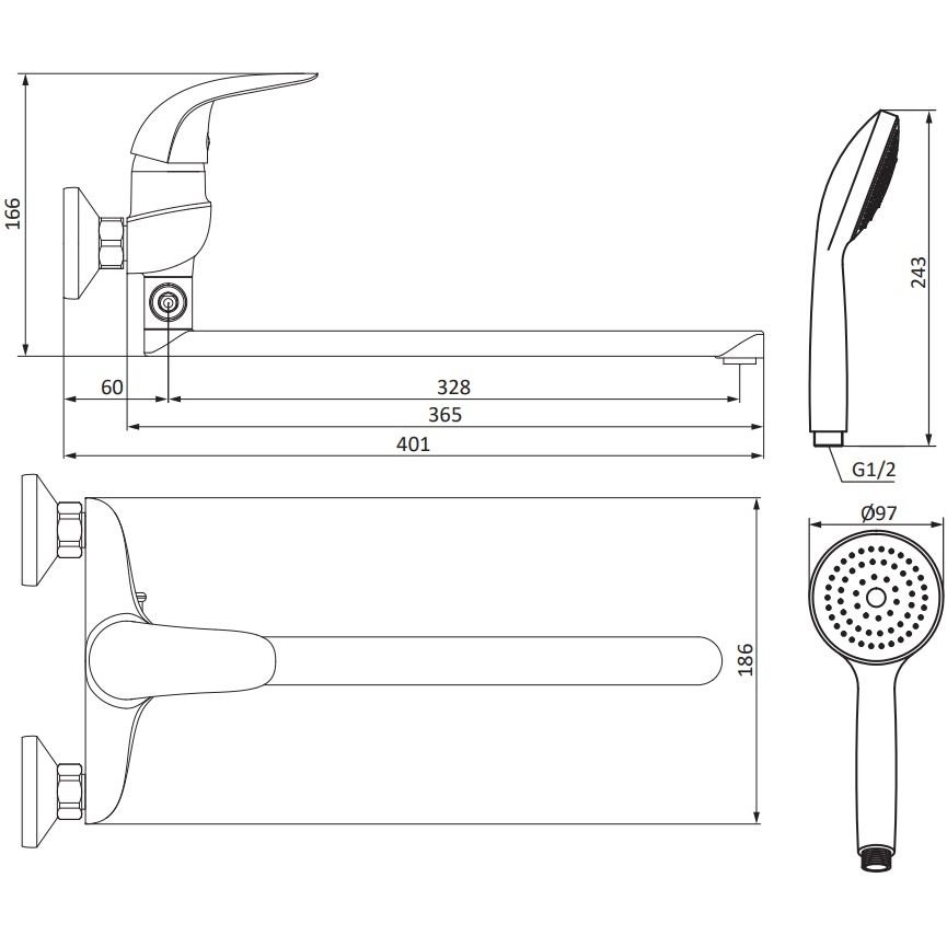 Смеситель для ванны и душа Damixa (Дамикса) Eclipse, хром, универсальный излив, душевой комплект хром, 319500001