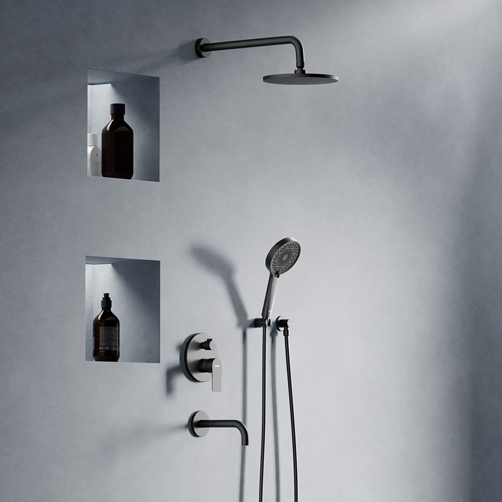 Встраиваемая душевая система из коллекции Apollo станет центром притяжения ванной комнаты. Тонкие линии и четкие грани в сочетании с массивными формами создают исключительную коллаборацию стиля. Теперь и в матовом черном цвете. Полностью скрытые коммуникации: практичное и современное решение которое соответствует минималистичному скандинавскому стилю. Ничего лишнего. Увеличенные душевые лейки и 3 режима ручного душа позволят полностью насладиться душевыми процедурами - взбодриться утром и расслабится вечером. Верхний душ диаметром 250 мм ручной душ диаметром 125 мм. Керамический картридж Light Flow обеспечивает плавное управление ручкой смесителя и оптимальную регулировку температуры и мощности потока. Инновационное PVD-покрытие гарантирует чрезвычайную прочность смесителя. Матово-черная поверхность не выцветает с годами и устойчива к механическим повреждениям загрязнениям и отпечаткам пальцев.