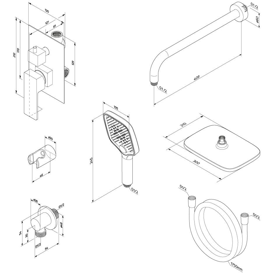 Комплектация:953520300 Gala встраиваемая душевая система с ванно-душевым смесителем, чёрный p>