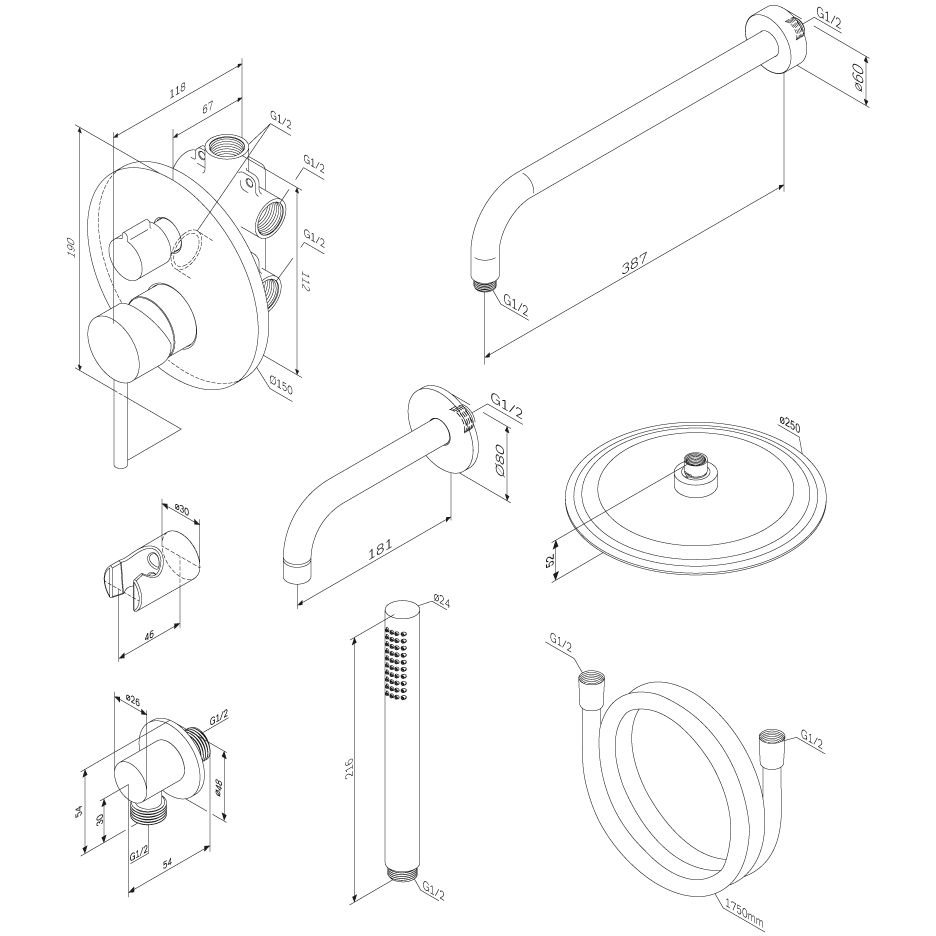 Глубина, мм:118 / 387 / 250 / 181 / 54 / 46 / 24 p>