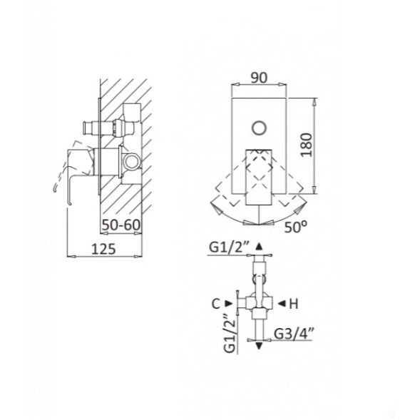 Доставка Встраиваемый однорычажный смеситель Cezares (Цезарис) для душа с переключателем, исполнение sunrise PORTA-VDIM-SR из Москва в районы и города ЮВАО, ЮЗАО, ЮАО, Новомосковский АО, Одинцово, Подольск, Щербинка, Троицк, Строительный рынок Славянский мир, 41-й км МКАД, бывшая Мельница, Красногорск, Домодедово, Тёплый стан, Коммунарка, Мосрентген, Видное, Мамыри, Краснознаменск