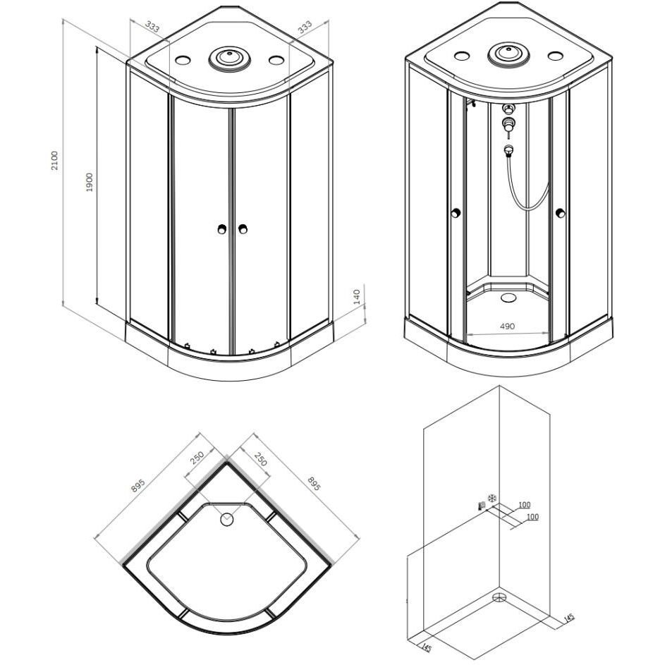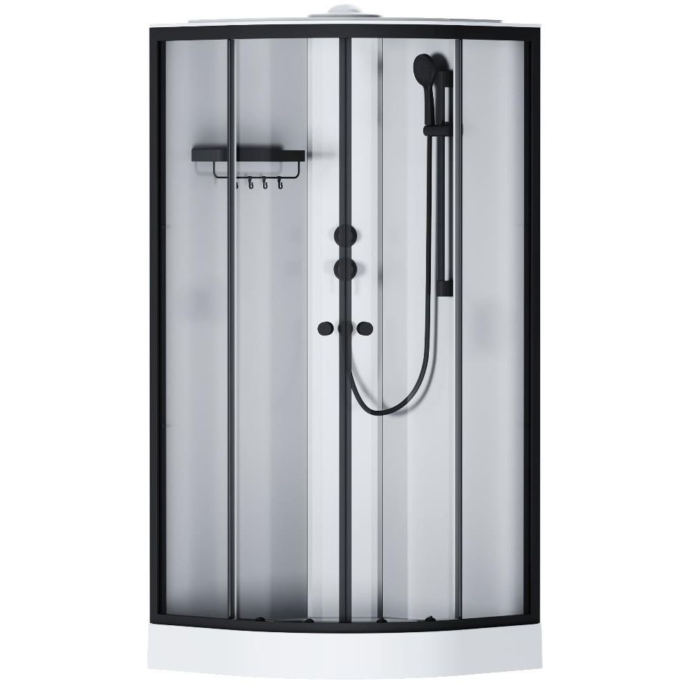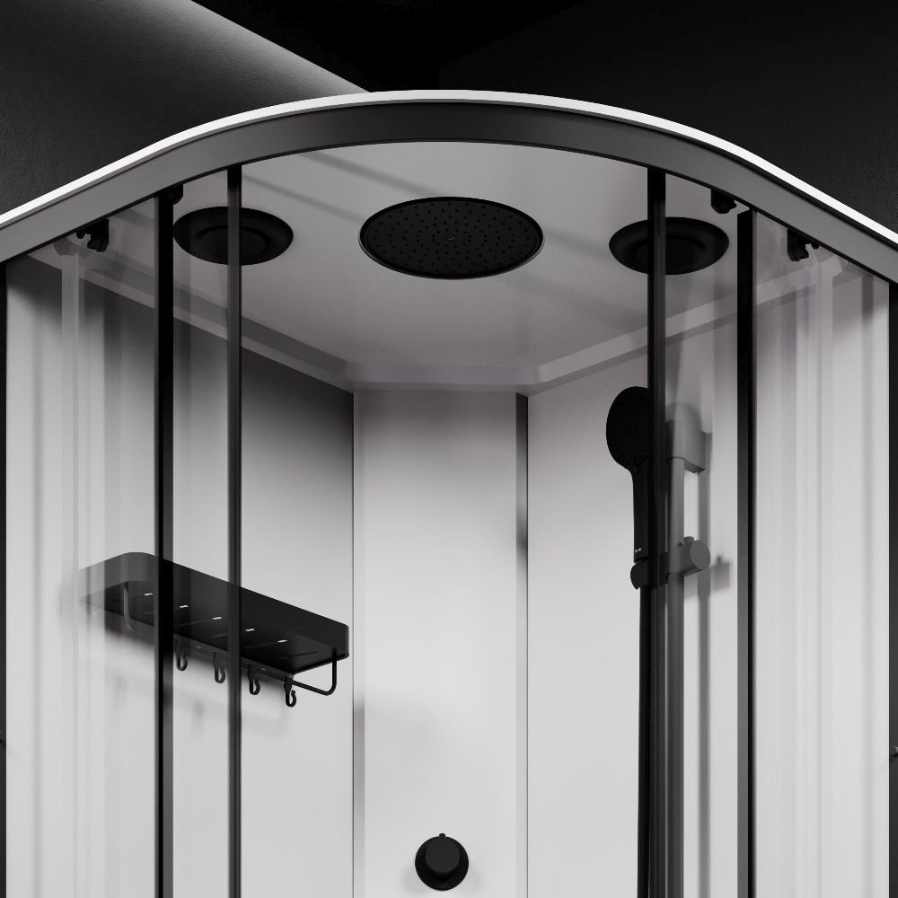 Кабина оснащена 5-режимным ручным душем, стильным смесителем и компактной полкой, на которой разместится все необходимое.