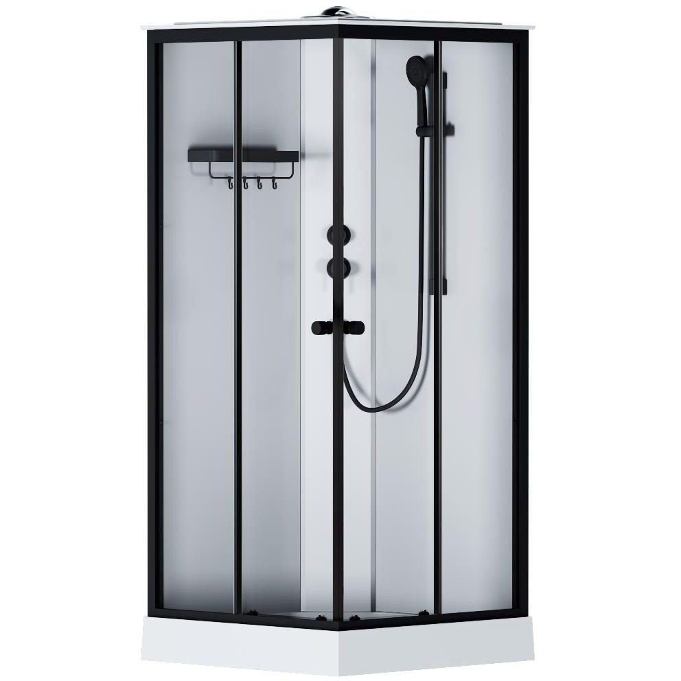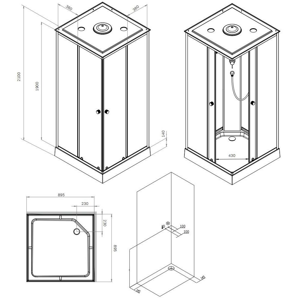 Кабина оснащена 5-режимным ручным душем, стильным смесителем и компактной полкой, на которой разместится все необходимое.
