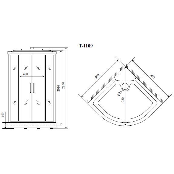 Душевая кабина Timo (Тимо) Standart T-6609SF цвет профиля хром, стекло матовое 5 мм 90х220х90 см