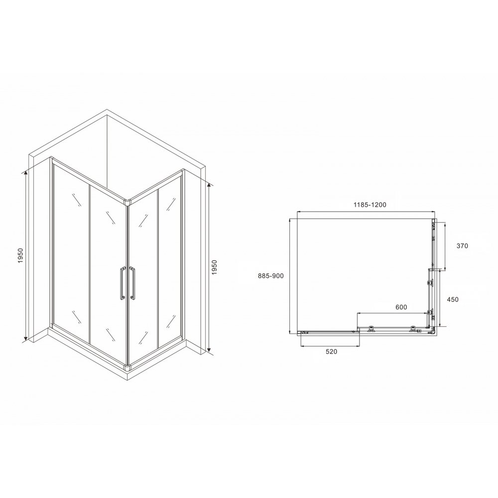 Душевой уголок ABBER Schwarzer Diamant AG02129H двойные ролики, металлические ручки