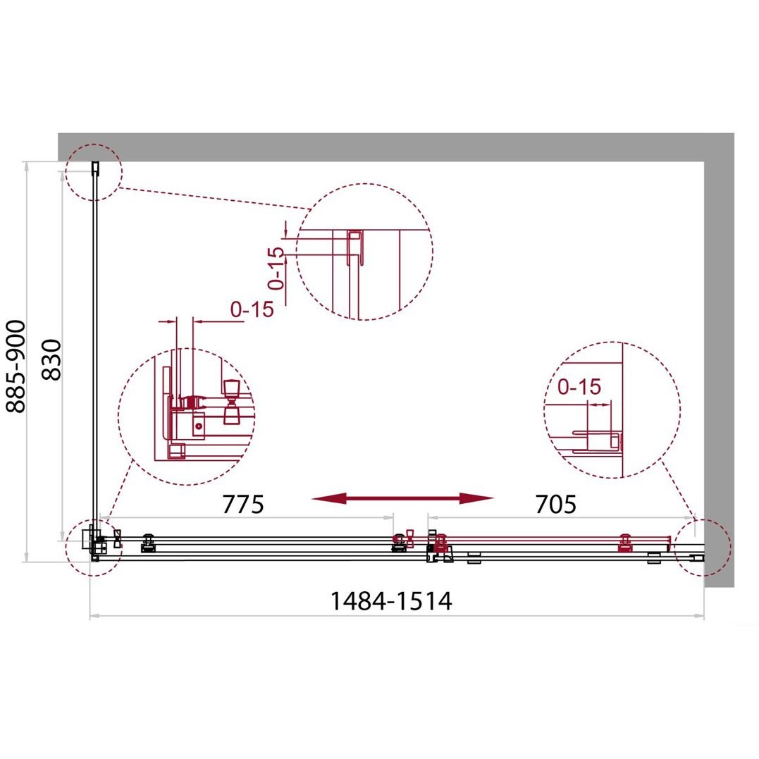 Душевой уголок BelBagno (Бельбагно) ACQUA-AH-1-150/90-C-Cr хром, стекло прозрачное 8 мм (1500х1950х900)