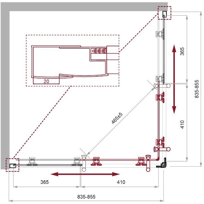Конструкция двери: раздвижная, двойные подшипниковые ролики.