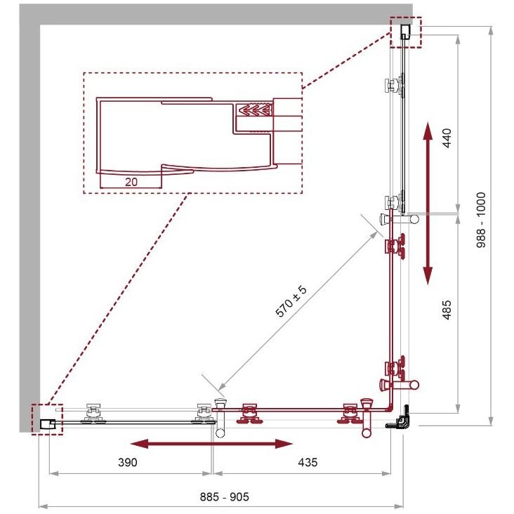 Конструкция двери: раздвижная, двойные подшипниковые ролики.