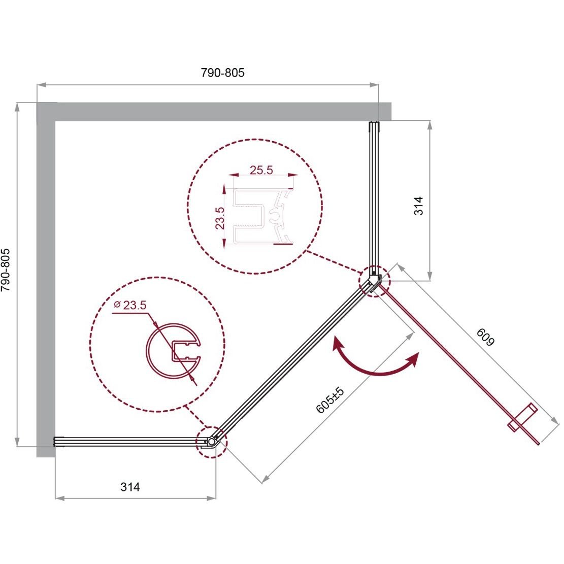 Душевой уголок BelBagno (Бельбагно) UNO-195-P-1-80-C-Cr хром, стекло прозрачное 5 мм (800х1950х800)