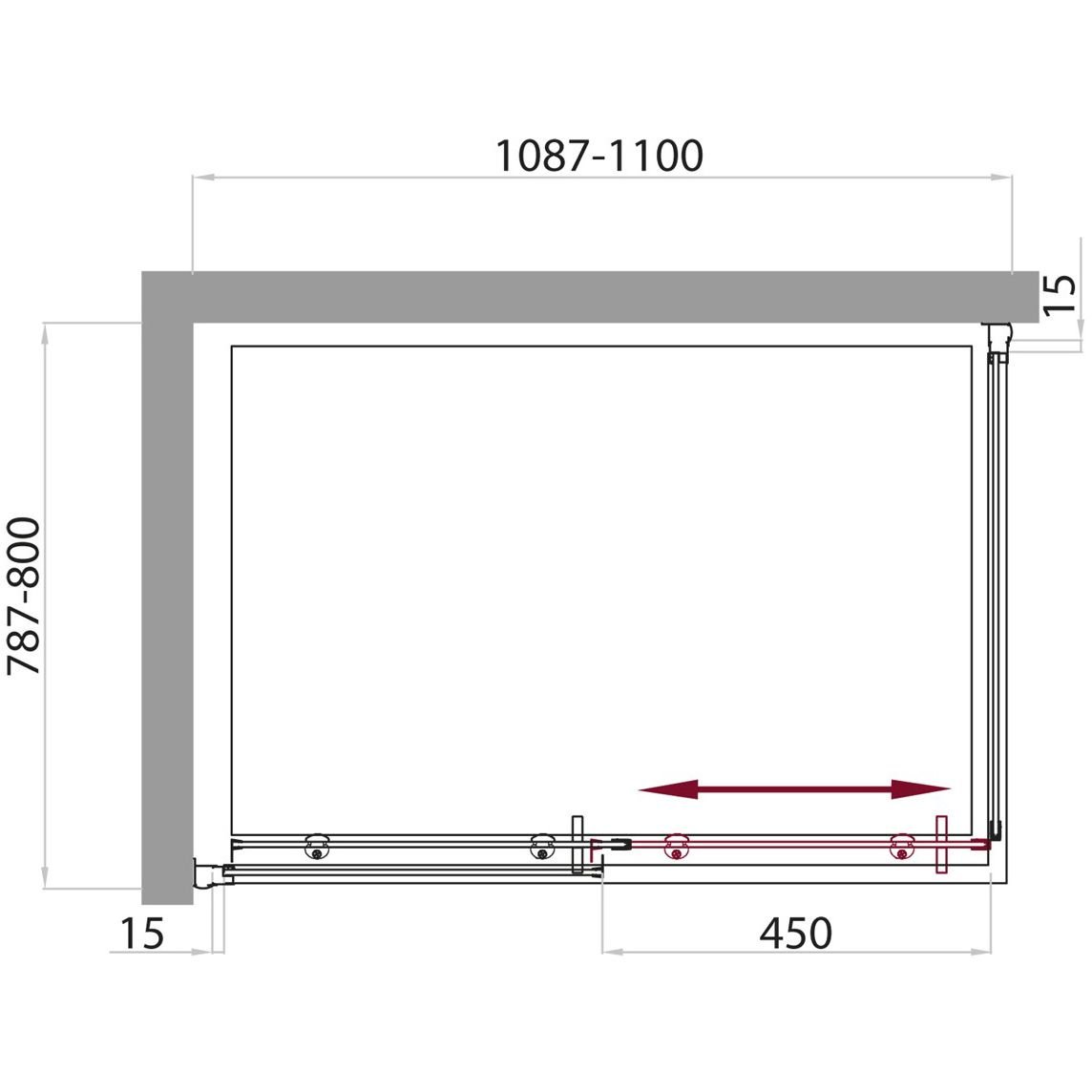 Конструкция двери: раздвижная, двойные подшипниковые ролики.