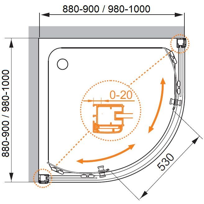Поддон: тип R (радиус 550). Поддон приобретается отдельно.