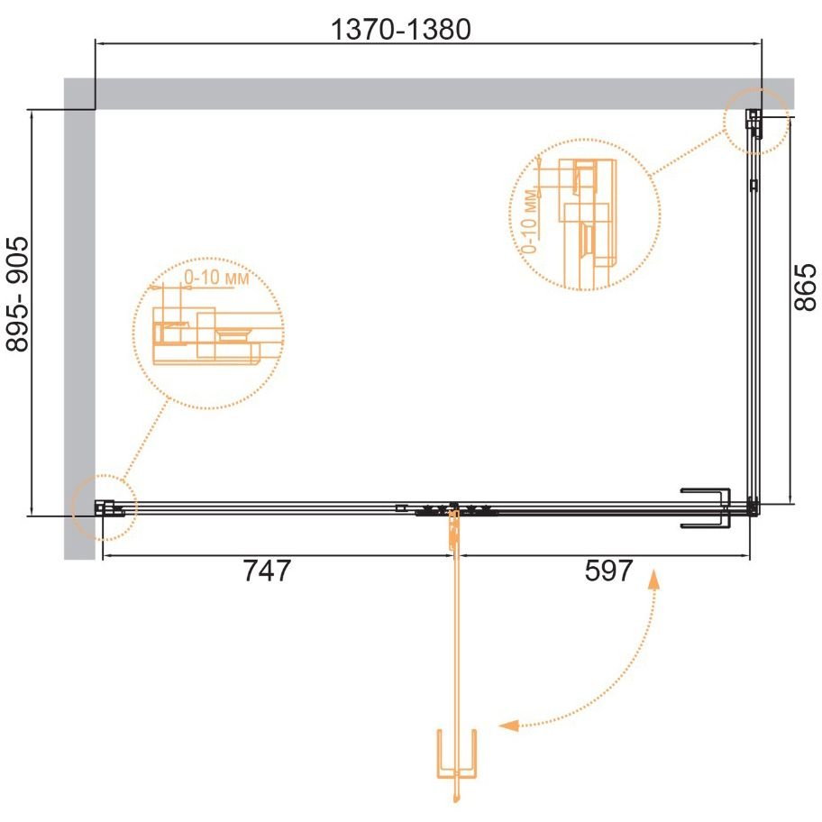 Монтаж: пристенный в угол, ориентация универсальная.