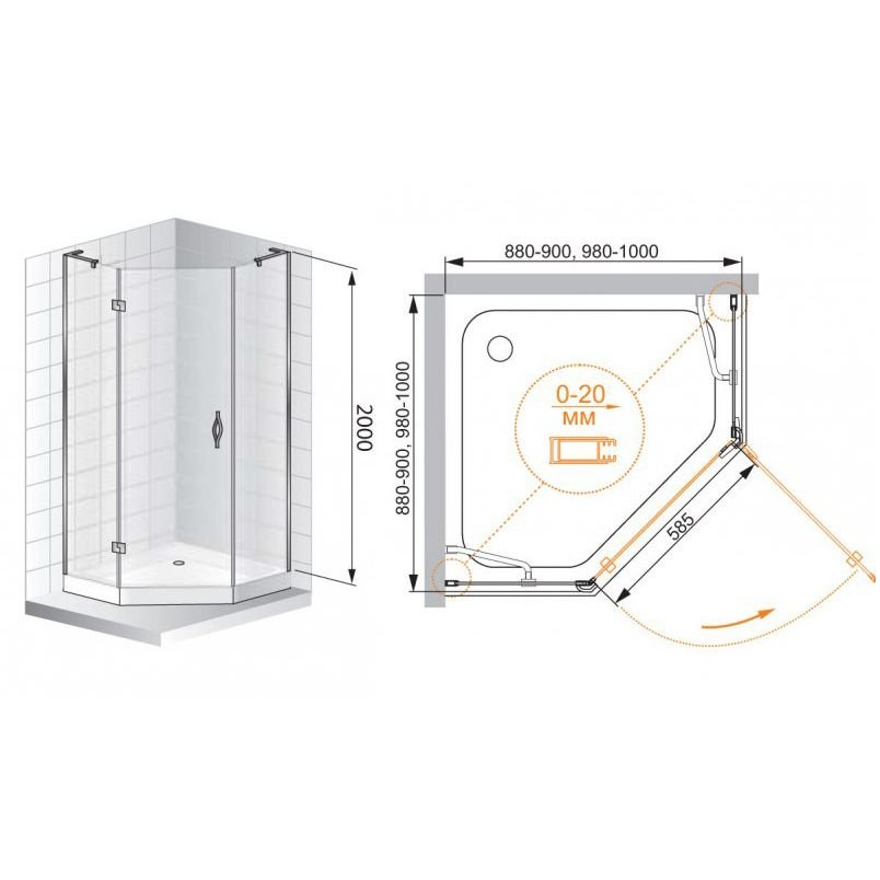 Душевой уголок Cezares (Цезарис) BERGAMO-W-P-1-90-C-Cr-L-IV , цвет профиля хром, стекло прозрачное 6 мм 90х200х90 см
