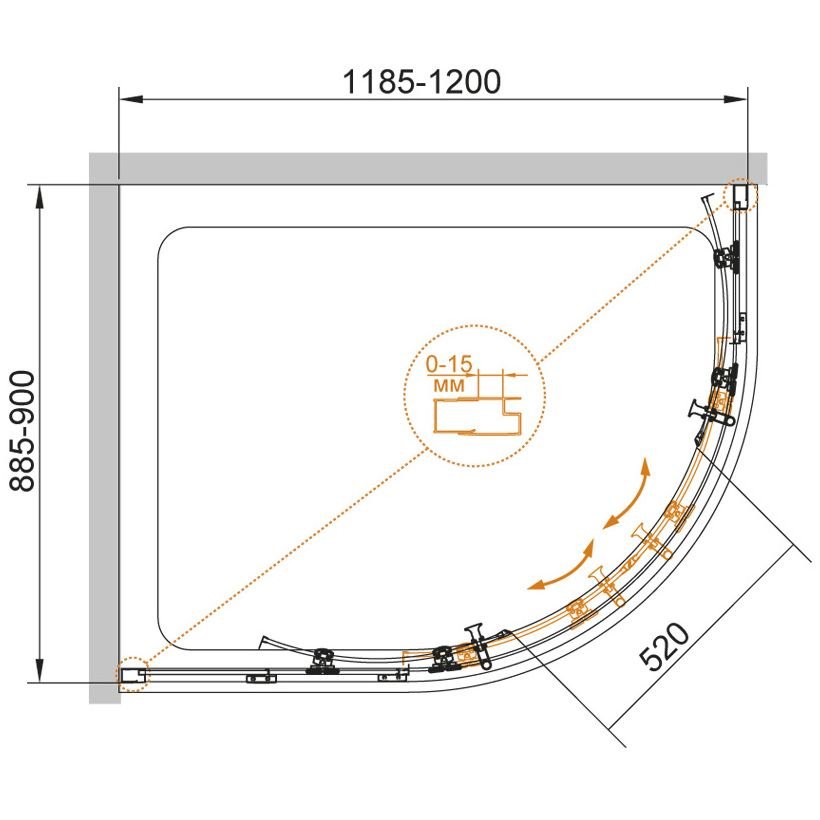 Душевой уголок, радиальный ассиметричный