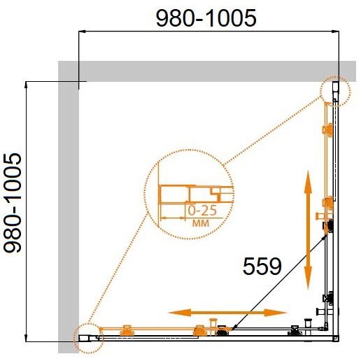Регулировка ширины предусмотрена за счет боковых профилей.