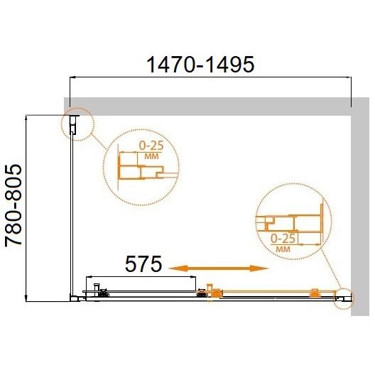 Регулировка ширины предусмотрена за счет боковых профилей.