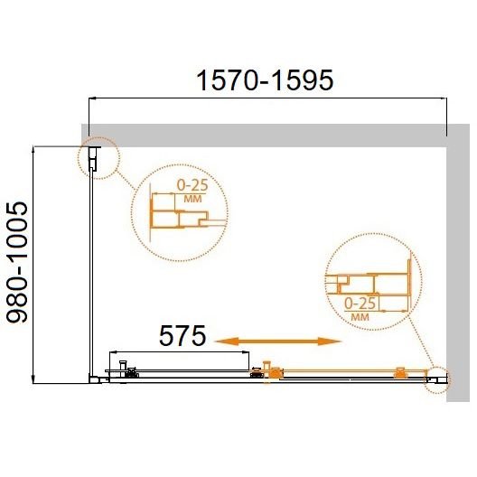 Регулировка ширины предусмотрена за счет боковых профилей.