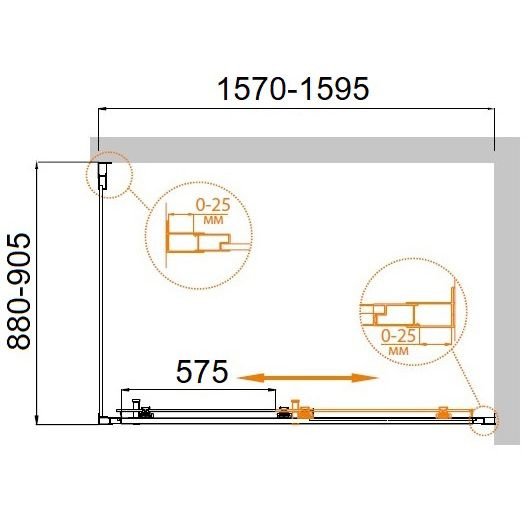 Регулировка ширины предусмотрена за счет боковых профилей.