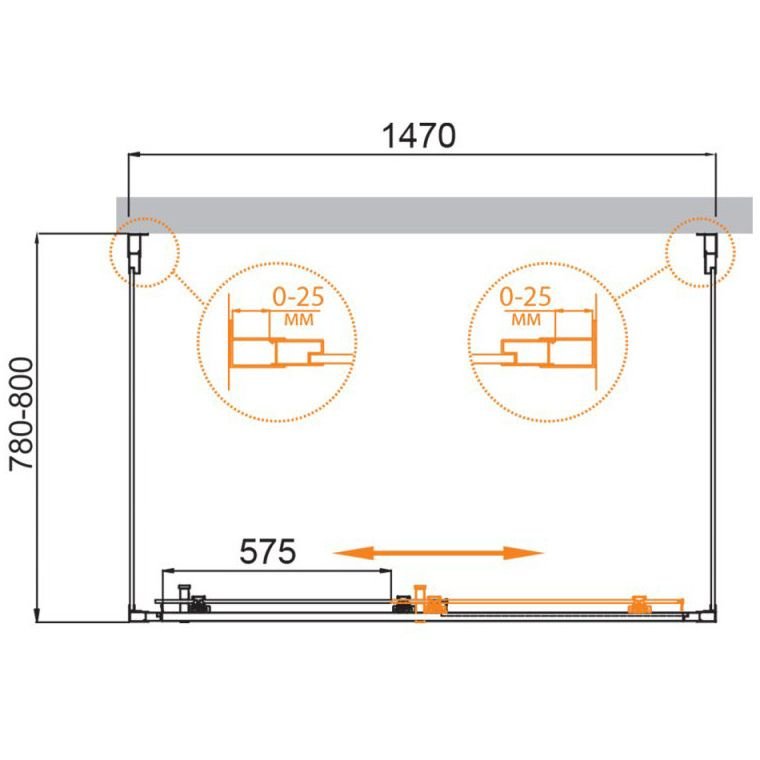 Регулировка ширины: предусмотрена за счет боковых профилей