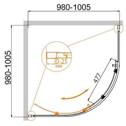 Душевой уголок четверть круга