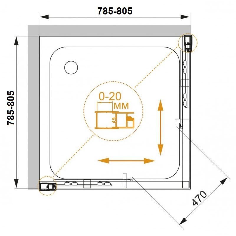 Душевой уголок Abber (Аббер) Schwarzer Diamant 800х800 мм (габариты площадки) AG02080MH