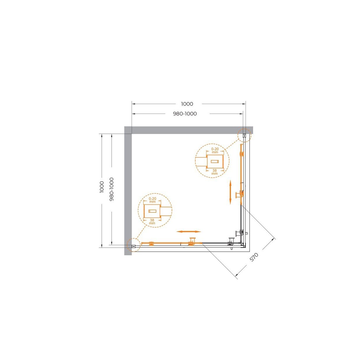 Душевой уголок Abber (Аббер) Ewiges Wasser 800х800 мм (габариты площадки) AG05080B