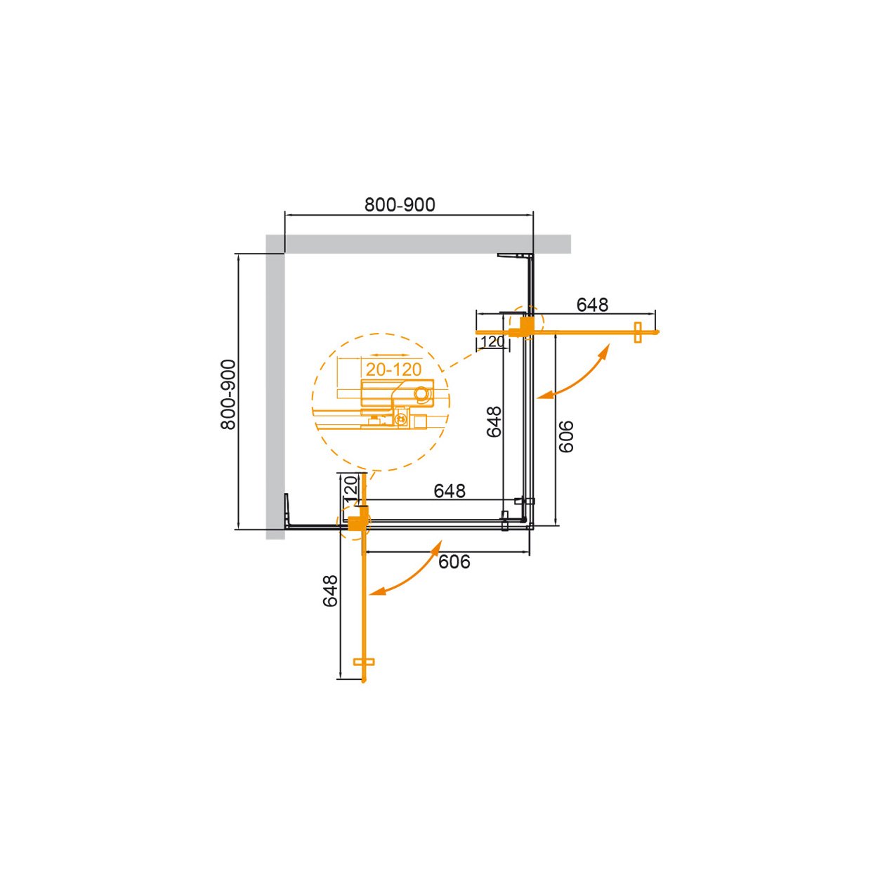 Душевой уголок RGW (РГВ) 90-100х90-100х195 см PA-38 Квадрат, Хром, Прозрачное, 6 мм (06083899-11)