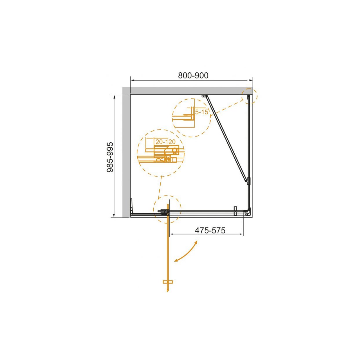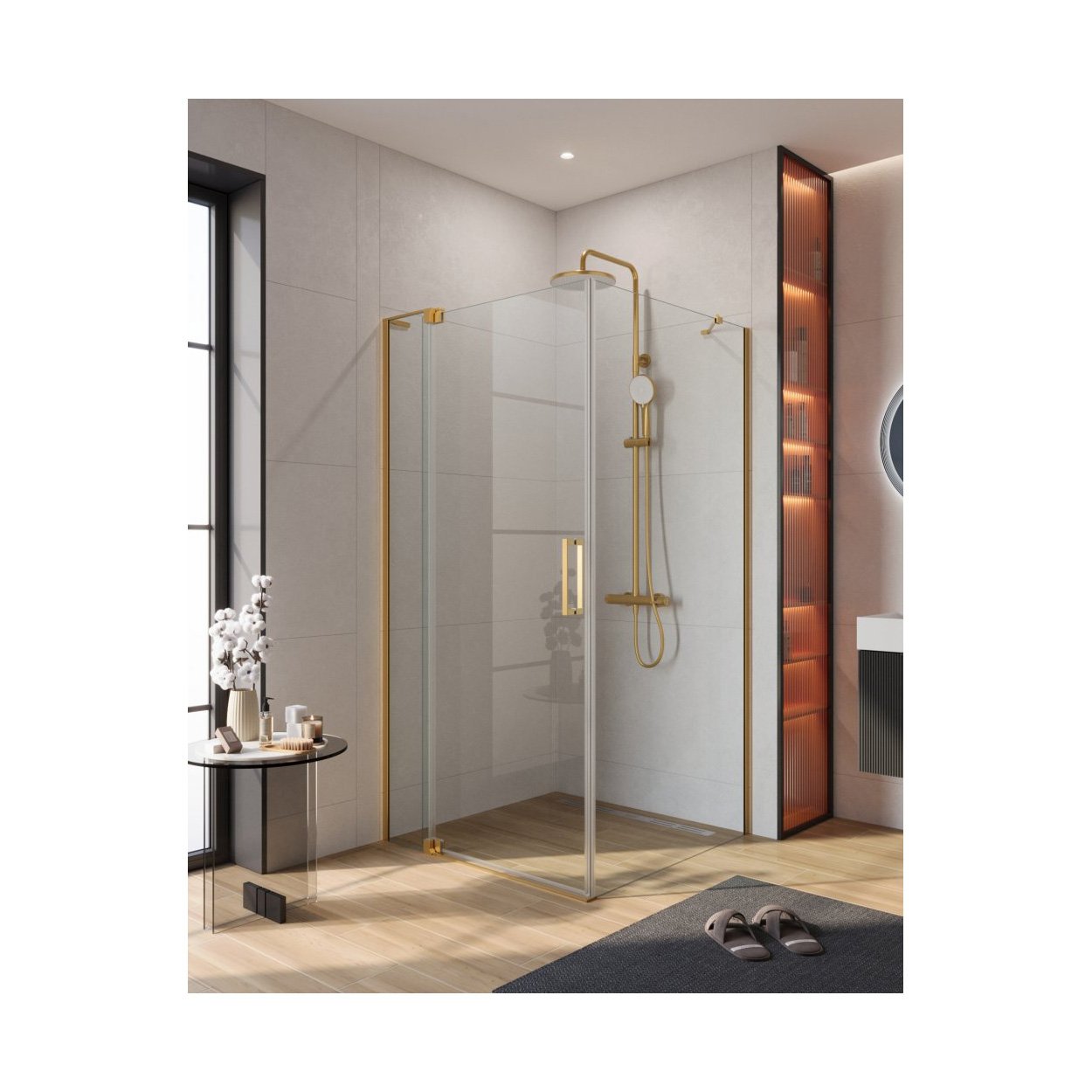 Душевой уголок Cezares (Цезарис) SLIDER-AH-1-80-90/100-C-BORO цвет профиля золото, стекло прозрачное 8 мм 90/100х195х80 см