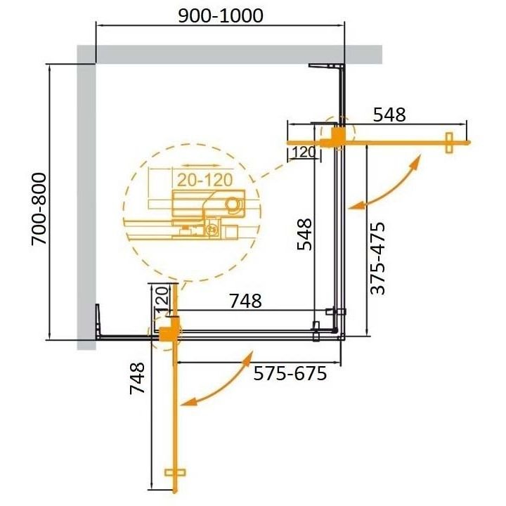 ОБРАТИТЕ ВНИМАНИЕ: конструкция петли позволяет регулировать ширину входа душевого ограждения в диапазоне 10 см