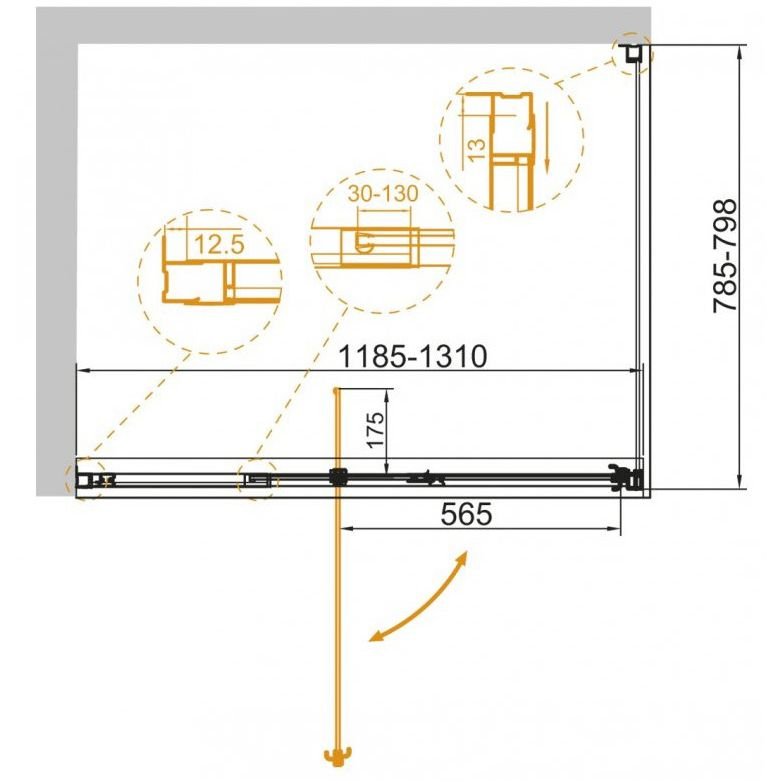 Душевой уголок Cezares (Цезарис) Variante-AH-1-120/130-80-C-Cr, цвет профиля хром, стекло прозрачное 6 мм 130х195х80 см