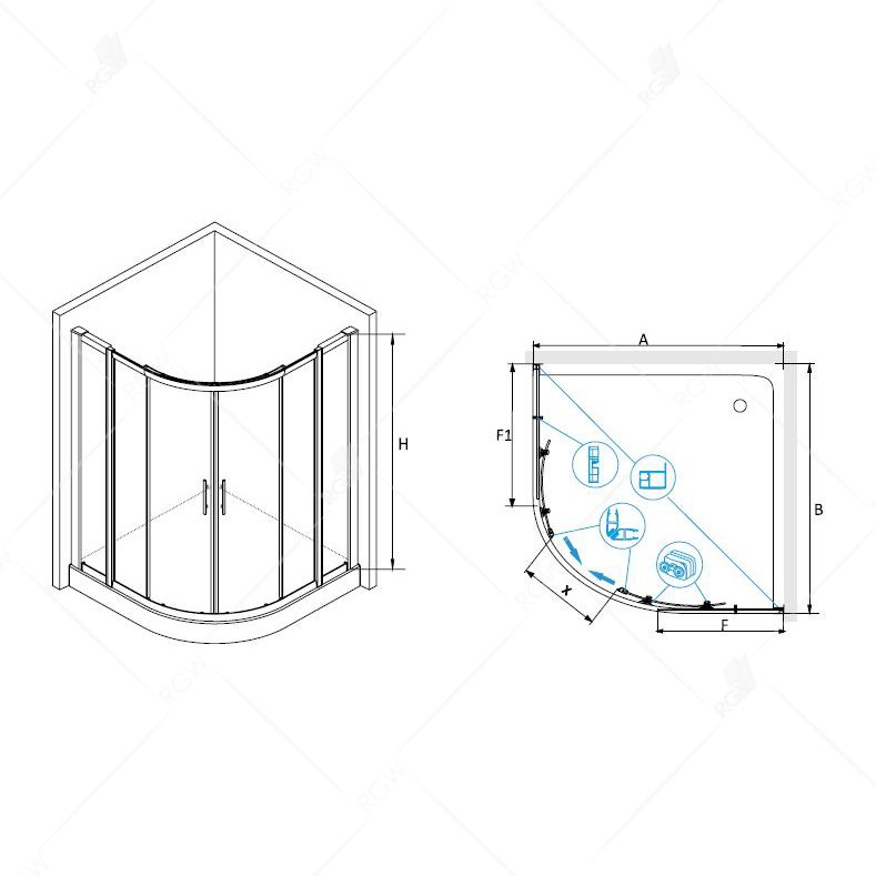 Доставка Душевой уголок RGW (РГВ) 130х130х195 см HO-512 HO-51 + Z-42 Полукруг, Хром, Прозрачное, 8 мм Easy Clean (030651233-11) из Москва в районы и города ЮВАО, ЮЗАО, ЮАО, Новомосковский АО, Одинцово, Подольск, Щербинка, Троицк, Строительный рынок Славянский мир, 41-й км МКАД, бывшая Мельница, Красногорск, Домодедово, Тёплый стан, Коммунарка, Мосрентген, Видное, Мамыри, Краснознаменск
