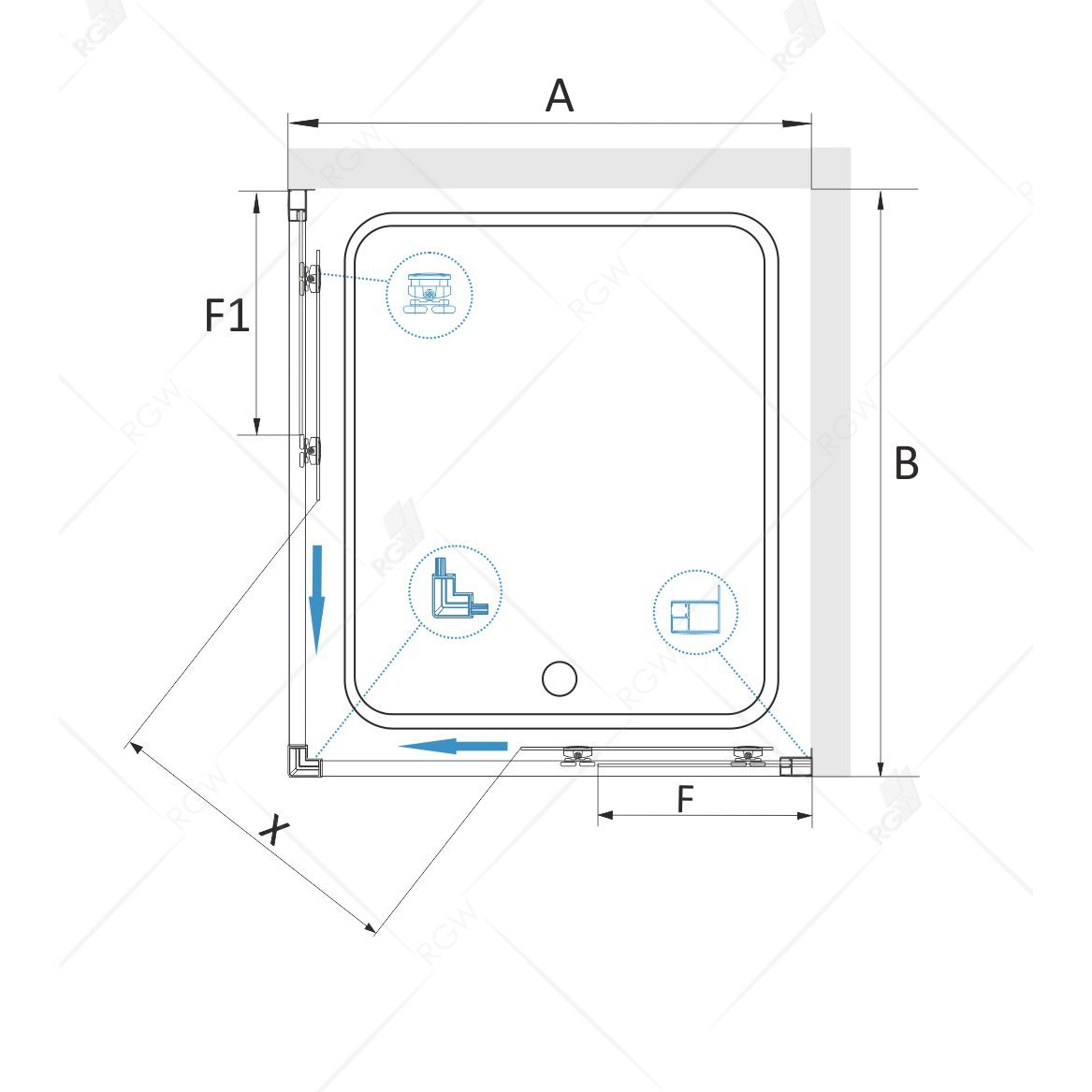 Душевая дверь Wasserkraft (Васеркрафт) Alme 15R05 SET338